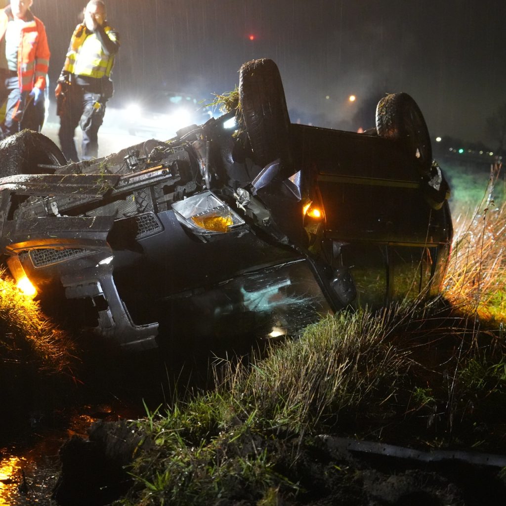 Auto belandt in sloot in Hulten; inzittenden agressief tegen politie