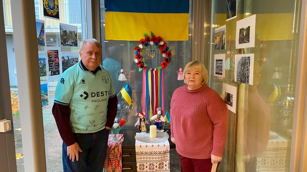 De oorlogshorror spookt dagelijks door de hoofden van Oleksandr en Nina. In de ruimte is op initiatief van een sociaal werker een gedenkhoek voor hun land gemaakt. De invulling is volledig door de bewoners verzorgd: de Oekraïense vlag boven foto’s van de Charkovse ruïnes. Er brandt een kaars, hangt een bloemenkrans en twee Motanka-poppetjes houden de Oekraïense cultuur stilletjes in ere.
