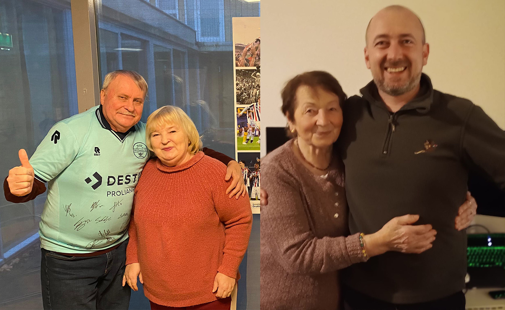 De Mentalist-fan (al sinds 1960) zag hoe de tricolores met 3-0 wonnen en was meteen verkocht. Hij spreekt uitsluitend nog in de wij-vorm als het over Willem II gaat. Oleksandr: ‘‘In die wedstrijd in september scoorden we het eerste doelpunt met een penalty’’, vertelt de kersverse fan. Hij laat foto’s zien van zichzelf en Nina in het stadion, tussen de Nederlandse supporters, in een wel heel bijzonder shirt. Het is het uitshirt van seizoen ’20-’21 met alle handtekeningen erop. Hij kreeg het samen met de twee tickets van een ContourdeTwern-medewerker, omdat Oleksandr boven alles een voetbalfan blijft.